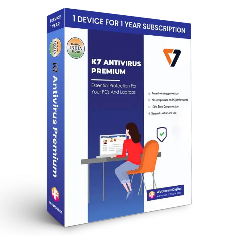 K7 Antivirus Premium is a trusted and powerful security solution from K7 Security, designed to protect your PC from viruses, malware, ransomware, and other online threats. With real-time protection and ultra-fast scanning, it ensures strong security without slowing down your system.